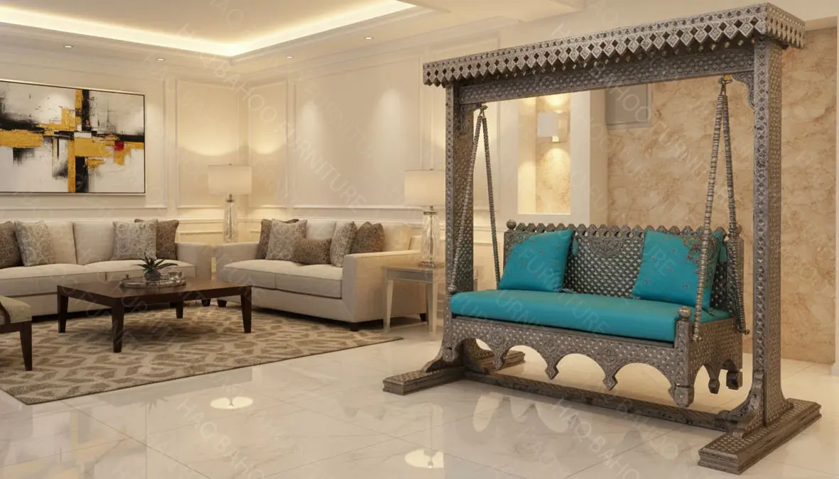wooden cane sea green swing Original price was: $ 1,855.Current price is: $ 1,799.