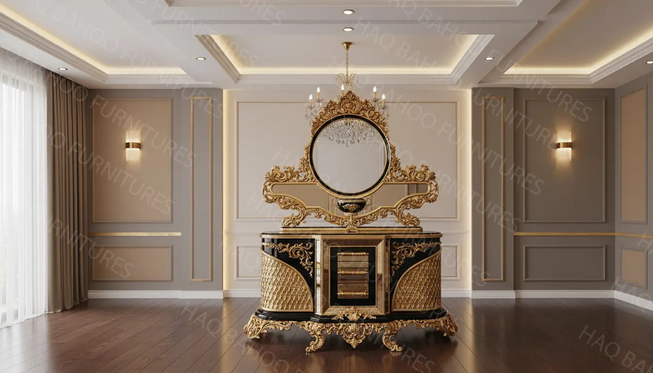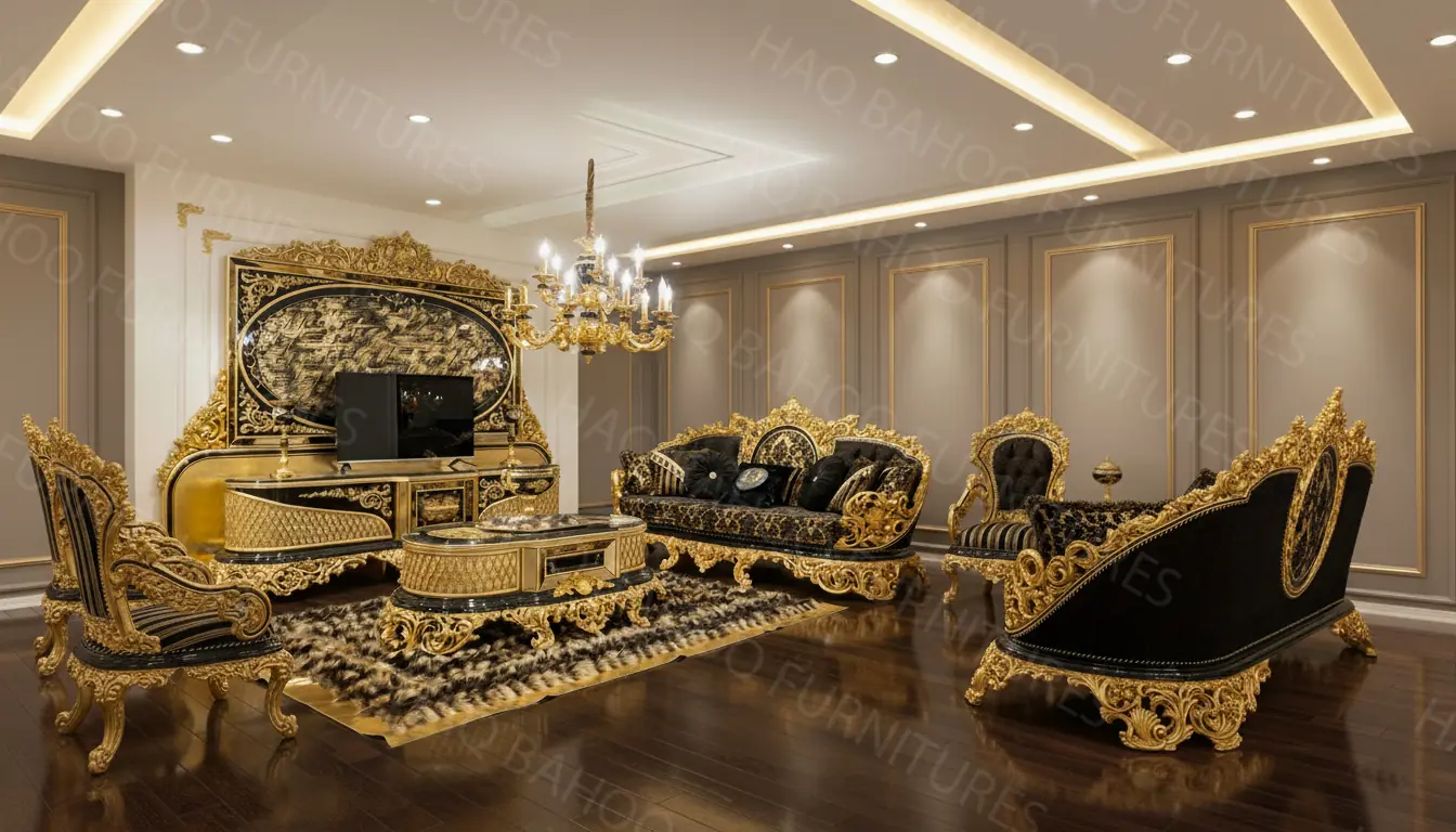 The Luxury Black & Gold Furniture Package from HAQ BAHOO FURNITURE, Chiniot, represents premium craftsmanship tailored for customers seeking exclusivity in the nursery furniture market of Karachi.