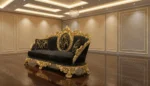 7-seater luxury black sofa set with black premium fabric and golden accents