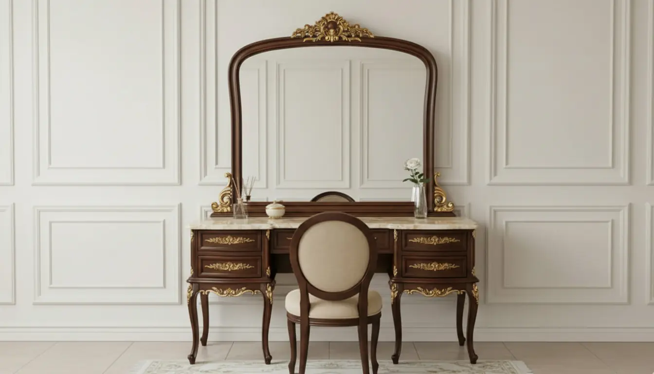 سرير مودرن خشب طبيعي فاخر مع كومودينو وتسريحة | حق باهو للأثاث